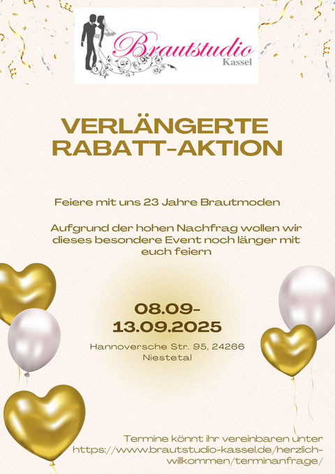 Like uns auf Facebook, um regelmäßig über Angebote und Aktionen in unserem Brautstudio informiert zu werden. Des Weiteren finden Sie dort auch Bilder von unserem einzigartigen und vielfältigen Sortiment.